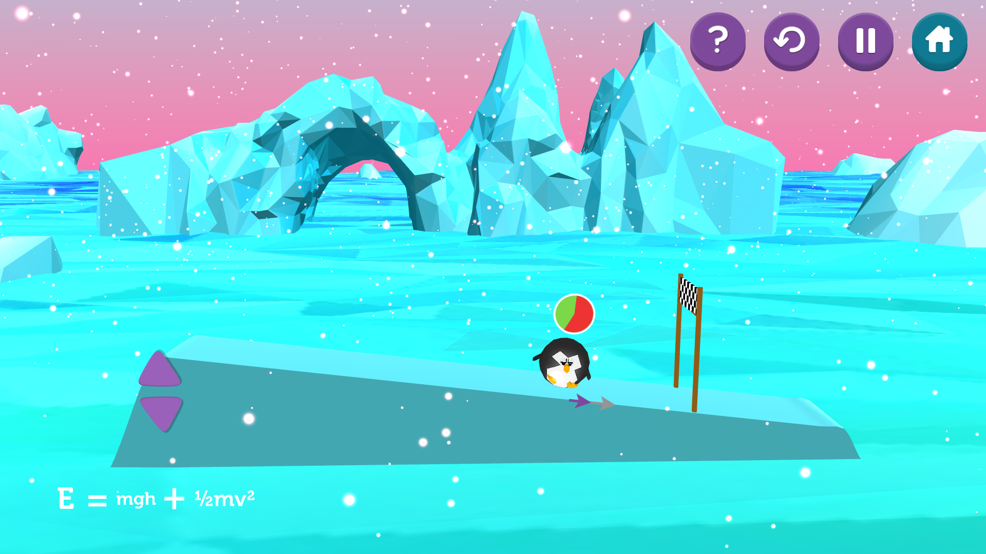 Potential Penguin is a game that facilitates the learning of classical Physics concepts. By modifying the terrain, you have to help the penguin reach the goal with the indicated amount of potential and kinetic energy.